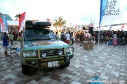左の写真は、左端が1981年から何度もダカールラリーに出場している内田正洋、右端はNOKチームのナビゲーターとして出場した経験を持つ斎藤淳。彼らとは砂の海で何度も会っているが、日本の海で3人が再び再会するとはほんとうに奇遇なことだ。右の写真はこのレースの主催者であり縁の下の力持ち。左からフォトウェーブの塩澤朋子さん、添畑薫さん、塩澤文彦さん、清水博文さん。みなさん大変お世話になりました。そして貴重な体験をありがとうございました。