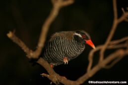 地元の「やんばるくいな」を見せてくれるというので、夜になってから車で出かけてみた。眠っている「やんばるくいな」は、近づいても動かないし、フラッシュを使っても気がつかないで眠り続けているらしい。夜は片足で寝ているそのバランスにビックリ。