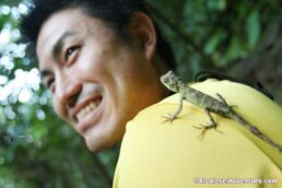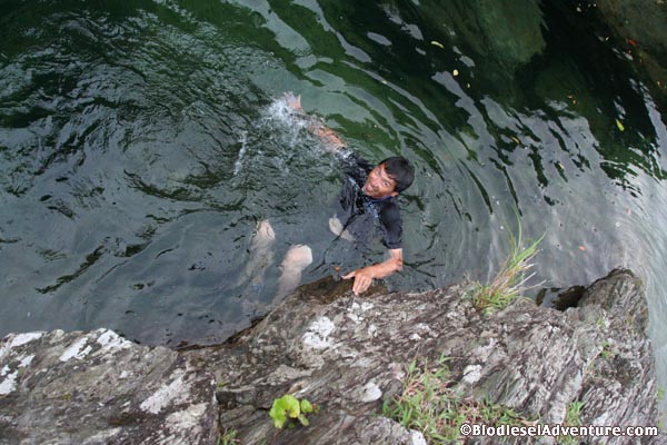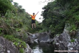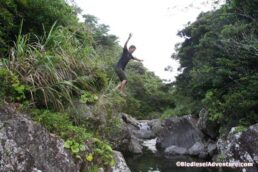 そこでは怖いという感じはなく、穏やかで癒されるといっていいだろうか。ほんとうに素敵な場所だった。中村くんにはそこに住む虫や魚などを紹介してもらい、楽しいトレッキングをした後、2、3メートルある大岩からのジャンプダイビングに挑戦した。