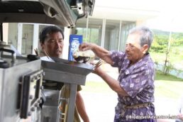 朝から食堂から出た廃食油をみなさんに入れていただいた。陽気なおばあちゃんは、昔覚えた歌を披露してくれた。
