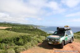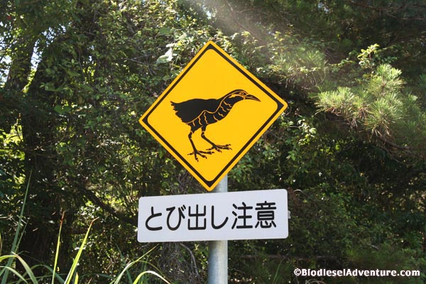 ほとんど対向車とすれ違うことのないヤンバルでは、ヤンバルクイナの飛び出し注意の看板が目立つ。ここを走る車は気持ちがよくて飛ばしそう。けっこうやんばるくいなの交通事故はあるらしい。・・・・バスコファイブはエコドライブなので、スピードは出さないものの、ヤンバルクイナがでてこないか目を光らせて走る。