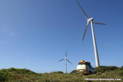 朝ご飯をいただいた後、近くのウインドミル(風力発電)を見に海岸までバスコファイブを走らせた。天気が良く、風が気持ちいい。僕がカモメなら翼を広げていつまでも上昇気流に乗ってウインドサーフしているにちがいない。