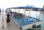 このリゾートでは「サンゴの植え付け講習」が行われているということで、グラスボートに乗せてもらい説明を聞く。この講習はリゾートのアクティビティのひとつで、サンゴについて正しい知識を勉強し、あらかじめ漁協で大切に育てられたサンゴの苗の植え付け体験をするというもの。