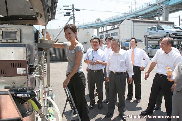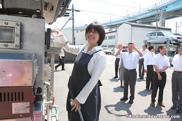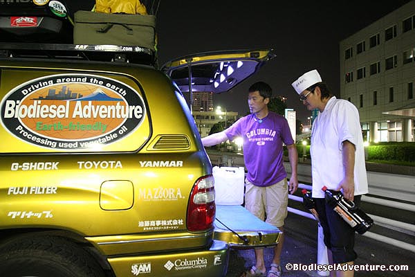 頂いた油は、黄金色に輝く大切な燃料に変えて、その後も無事走っています。日本ペイント福岡支社の皆さま、ご協力をありがとうございました! またお会いできる機会を楽しみにしています。