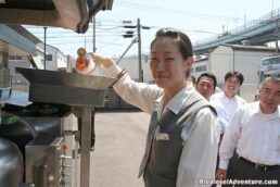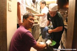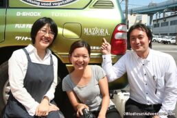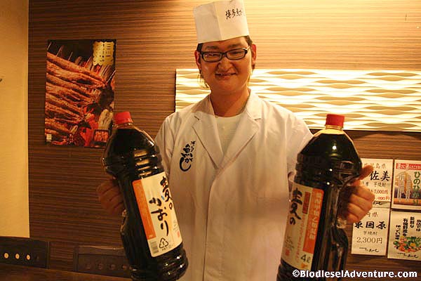 そして、このお店でも油を頂きました。聞けばオーナーもクルマが大好きだそうで、興味津々でわざわざ駐車場まで来てくれたんです。松尾さん、そして「博多魚がし」さん、ありがとうございました。また福岡へ行った際はぜひのれんをくぐらせて頂きますね。