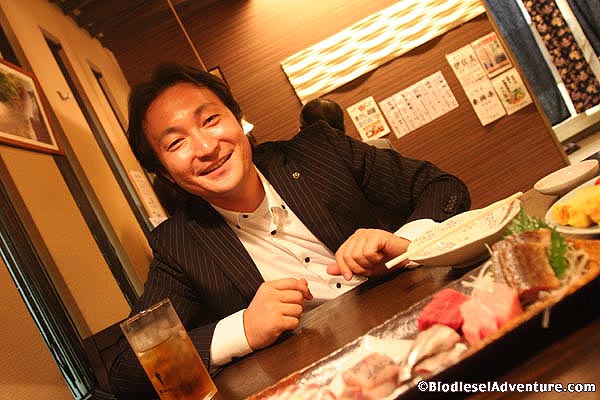 この講演の実現に向けて、きめ細やかに動いてくださったのが日本ペイント福岡支社の松尾さんだった。夜は彼オススメの日本料理屋「博多 魚がし」さんへ。ここは海鮮市場のセンターの中にあるだけあって、さすがお刺身や海の幸の美味しいこと! 松尾さんは優しい雰囲気が印象的。美味しい料理を食べながら将来のことや夢のこと、ゆったり熱く語れたのがとてもうれしかった。