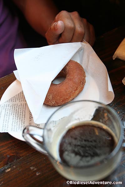 このお店のオーナーはその名の通りケンジさん。手作りドーナツにこだわり、油は米油を使用。安心安全なドーナツ作りがポリシーに掲げるお店だ。そして配達用のバンはSVO(ストレートベジタルブオイル)方式にして、ドーナツを揚げた油をそのまま燃料にして走らせている。名付けて「ドーナツECOカー」! 今日もほんのりドーナツのいい香りをさせながら、街を走っているんじゃないかな。