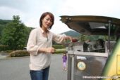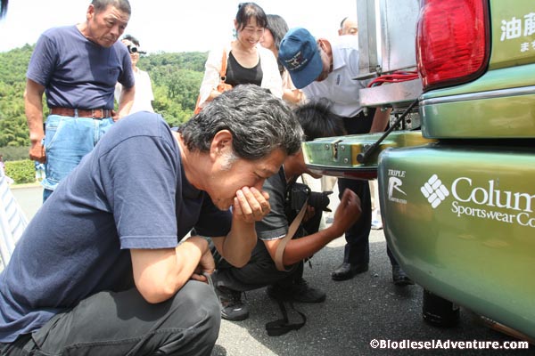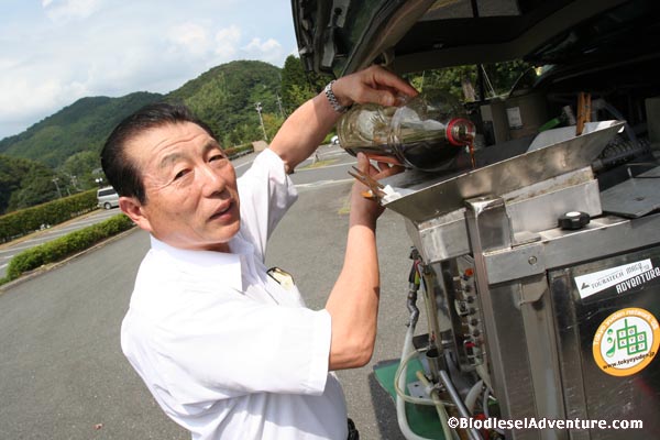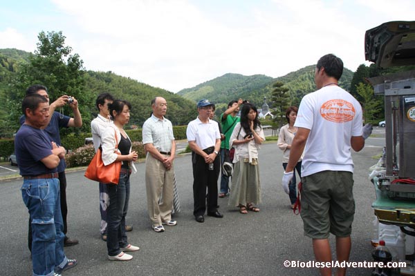 その後は参加者の皆さんにバスコファイブを見て頂き、廃食油を注いで頂いた。少しの量でも大切にペットボトルに詰めて、家から自ら油をもってきてくれる。何にも代え難い宝物だ。
