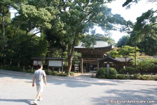 今朝はゆっくりと寝かせてもらい、疲れがほんとうに良くとれた。朝は早くから起きるという田坂さんに案内をされて、近くの桜井神社を訪れた。昨日、田坂さんの家を探している時に見かけて気になっていたので、やはり挨拶をしなければならないのだろう。縁内はとても開けていて気持ちのいい神社だ。とても400年も経っているとは思えない。神社本殿の背後の岩窟には神直日神(かみなおびのかみ)他3神が祀られ岩戸宮と呼ばれているそうだ。