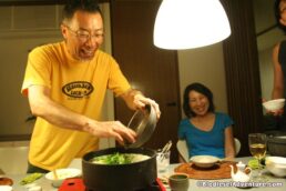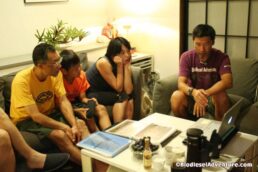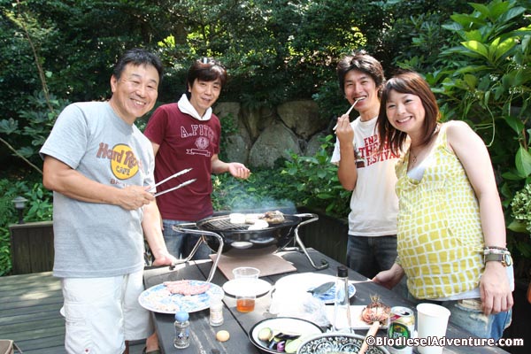 昼からは田坂さんの別荘に夕べの山崎さん家族や友人達が集まってバーベキューをすることになった。森に囲まれたベランダで、マイナスイオンを浴びながら写真やスライドショーなど見て旅の話に花が咲く。本当に愉快な方達でなにを話しても笑いになる。週末は、ほとんどこの別荘で過ごされるという田坂さん、仕事とプライベートのオン、オフがはっきりしていて、メリハリのある生き方はとても参考になる。福岡の地元で幼なじみがまわりにいて、素敵な自然に囲まれたライフスタイルも素敵だ。