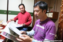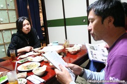 今夜の懇親会は、青木さんをはじめ、今回の実行メンバーの十河さん、松本さんが用意してくれた。さっそく、美味しいご馳走を食べながら自己紹介。十河さんはPTAや学校の評議会などで青木さんと顔なじみで「暮らしといのちを考える会」の代表も勤める元気な主婦。