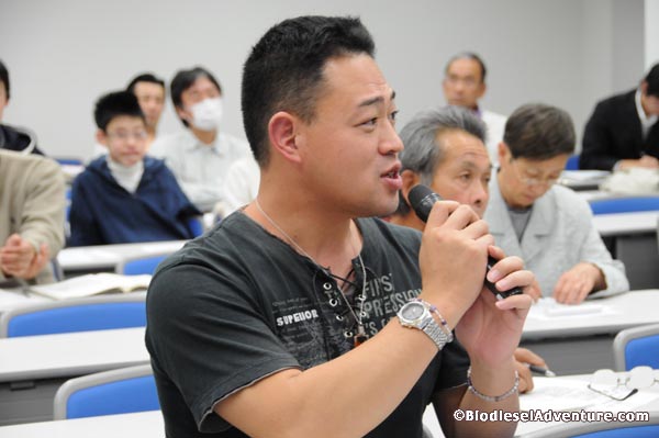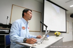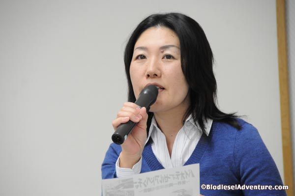 今回はいつもよりも少し講演時間が短かったので、限られた時間の中で集まっていただいた方達の興味の内容に応じた話をしようと思い、まずはバイオディーゼル燃料という言葉を聞いた事があるか、世界の環境に興味があるか、旅や冒険的な事に興味があるかなど挙手していただき、新しい試みをしてみた。
