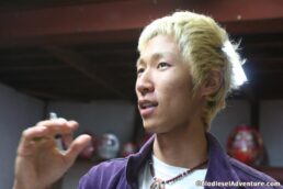 ……と、突然! 金髪の青年がやって来た。彼は世界一周やこのプロジェクトに興味をもっていて、わざわざ話を聞きに来てくれたのだ。現在は大学生で、旅をしながらヴァイオリンを奏でて人を癒すのがひとつの夢だという。