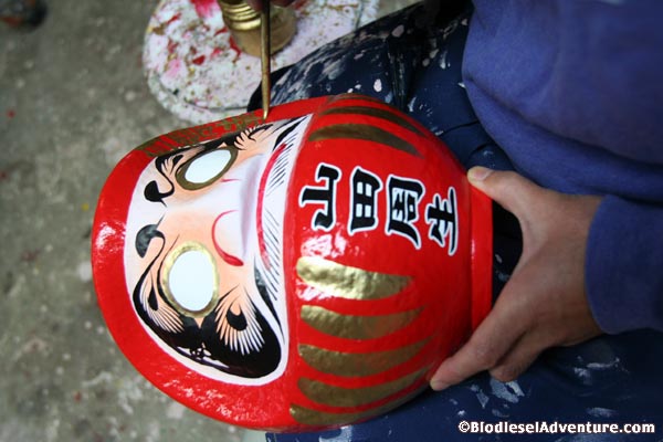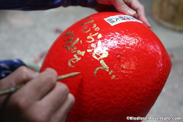 吉田だるまに到着すると、十河さん、吉田さんご夫婦が待っていてくれた。すでに大きなだるまには僕の名前が入っており、願い事があればなんでもだるまに書いていただけるという。好きな四文字熟語はなんですか、と聞かれてすぐにうかばず、ちょっと悩んでしまった。