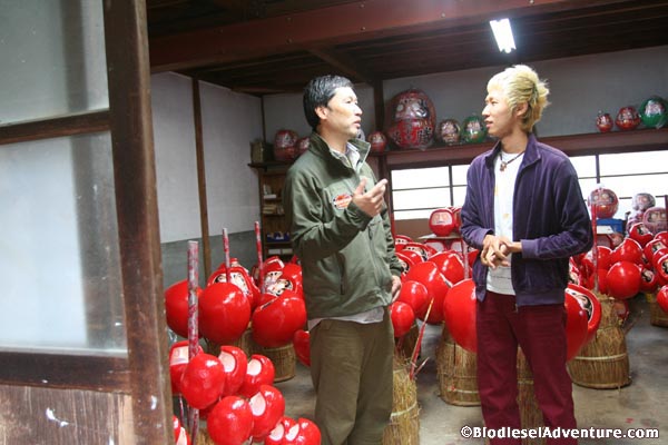 そこでこの日の朝、まず青木さんの自宅にバスコファイブを持ち込み、ガレージで電源をお借りして燃料の精製を進める。その間に、十河さんの待つ「吉田だるま」さんにうかがった。