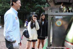 「この車、テレビで見ましたよ」と声をかけてくれる人も多かった。こちらの学生さんから、高校生、お父さんお母さん?や子供連れ、そして若い青年まで。思った以上に反応があり、驚いてしまった。