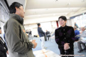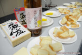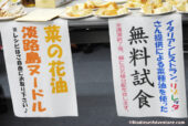 島の特産試食会も催された。地元で採れた菜種油、藻塩や南あわじ特産の手延べ麺”淡路島ヌードル”など、どれもとても美味しい!! おもしろいのがこの”手延べ麺”。うどんと素麺のハイブリッドのようで和風、洋風、アジア風にも合いそう。この日のシェフは、イタリアンレストラン「リゾレッタ」の井壺さん。イタリアでの修行経験があり、なんと岡田さんの教え子でもあるそうだ。