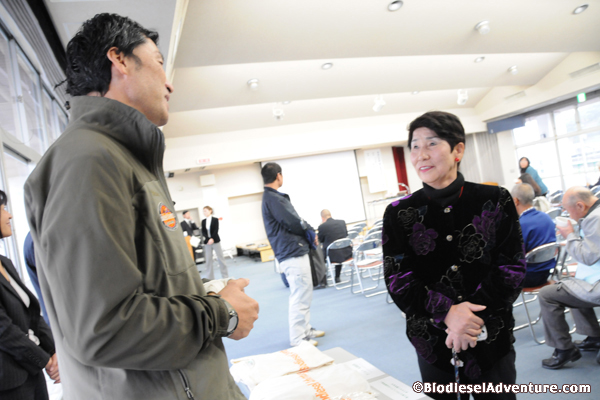 素朴な疑問からバイオディーゼル燃料のことまで、このような質問タイムは僕自身にもいい勉強になる。何より皆さんと直接お話をしてコミュニケーションできることがとてもうれしい。ちなみに、廃食油の匂いは世界でもさまざまですが、やはり「揚げたもの」の匂いがします。だからバスコファイブのマフラーからも、廃ガスの匂いではなく香ばし〜いかおりがするんですよ!