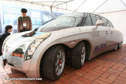 バスコファイブの斜め向かいには、電気自動車で4年前に世界最速(370km/h)をたたき出したエリーカが展示されていた。