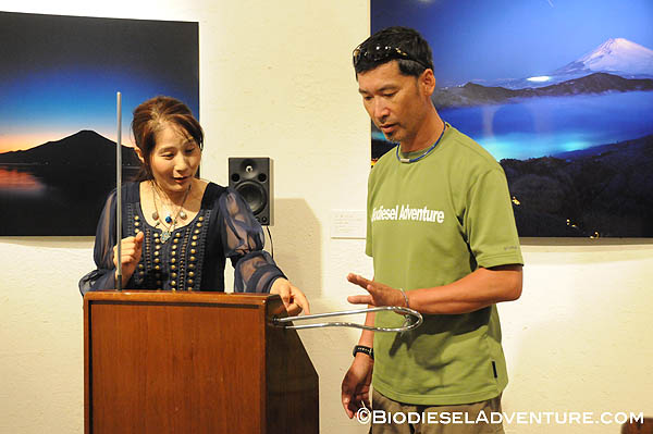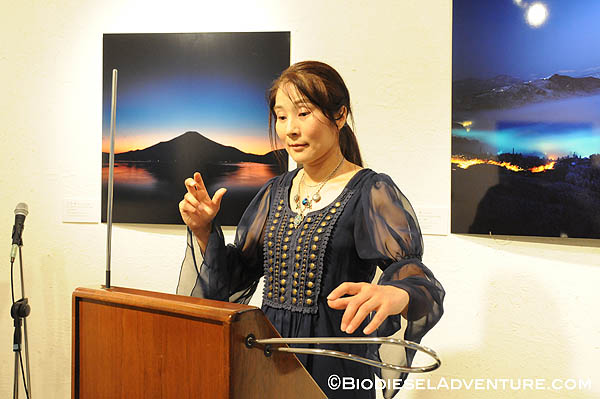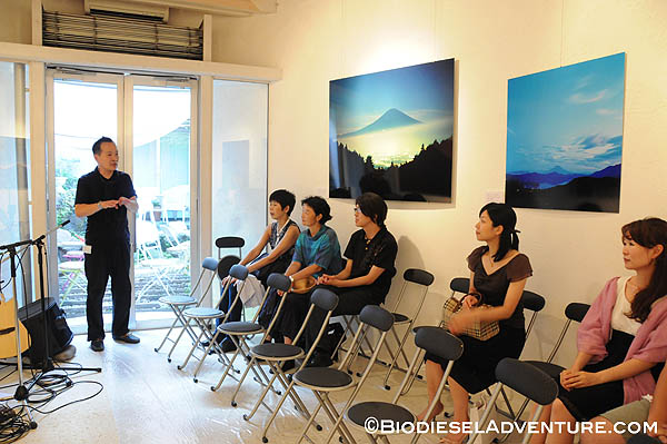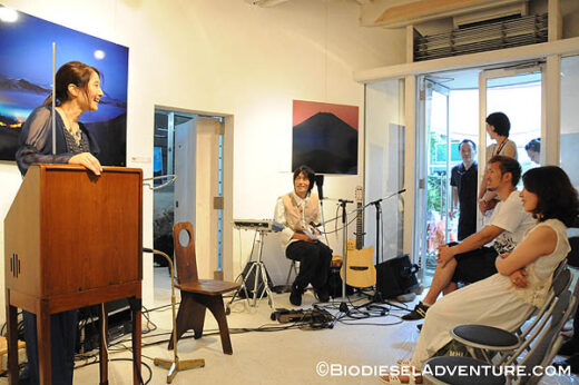 会場に到着すると「箱根写真美術館」の館長さん・遠藤桂さんが、出迎えてくれた。遠藤さんは地元箱根出身の写真家。先代のお父様もここで昔から写真館をされていて、現在は一緒にギャラリーを運営されているそう。遠藤さんは富士山の作品を多く撮影していて、この日の演奏会場にも富士山の写真が飾られていた。「8×10カメラや中判のハッセルで撮影しています。富士山まではここから近いですから、コンディションがいいなと思ったら、すぐに車を走らせて撮りにいくんですよ」と遠藤さん。月明かりを使って露光したものや、夜に長時間露光したものなど、すばらしく神秘的な写真だった。