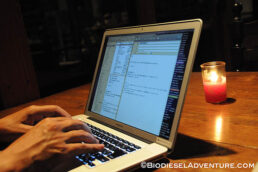 ここ、シャロムではディーゼルカーをSVO方式にして廃油を燃料にしている。以前から送迎用の車に使用しているのだが、今はワーゲンの車1台に使用しているそうだ。