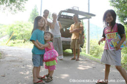 うん!? 何だかシホさんの様子がおかしい!? じつは彼女はバイクや車で放浪するのが大好き。見ているうちに、今にでも飛び出してしまいたい〜とウズウズわいてきてしまったごようす(笑)。じゃあ、未来のベジカー探しにと、トランポ(バイクを運ぶクルマ)を見にいくと、すてきな1台を発見。広さも万全で、棚や配線も自分で行ったとか。持ち主は優しい顔の保育士さん。あれこれと質問に丁寧に答えてくれた。お名前は聞かなかったけれど、保育士さん、どうもありがとう。
