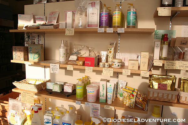じつは昨日「陽だまりハウス」のオーナーの木下さんが車を見にきてくださって、声をかけてくれたのだ。お店ではオーガニック食材や、環境にやさしい石けん類など体に優しい衣食住のさまざまなモノを取りそろえているとのことで、こちらもぜひ伺いたいと思っていた。