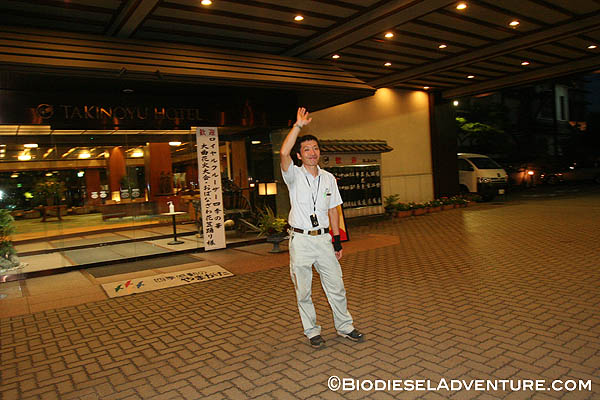 さて、もうこんな時間! 夕方どころか夜になってしまった。パネルを片付け、出発する。最後は吉田さんが見送りにきてくれた。