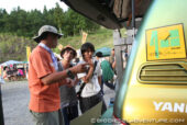 「この機械、ビールサーバーですか!?」「このクルマはなんなんですか!」「テレビで見ました、これ本物ですか!?」……とか。バイオディーゼル燃料(BDF)を知らない人も多かった。説明すると、みんな楽しそうに驚いてくれるのだった。聞けば、皆さんの職業はさまざま。地元の方々も多かったけれど、東京近郊はもちろん遠くは北海道から来ていた人も。野外音楽祭だけあって、けっこう年齢の若い方からもたくさん声をかけてもらえたのもうれしかったな。アースデイの時にお世話になった皆さんともこれを機会に再会できたのも感激だった。
