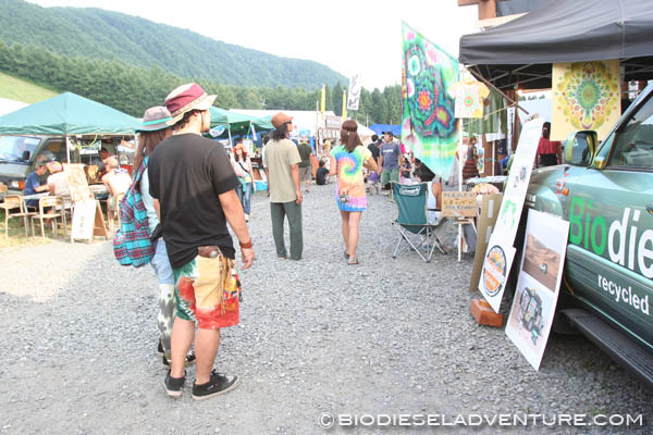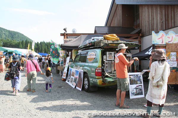 「この機械、ビールサーバーですか!?」「このクルマはなんなんですか!」「テレビで見ました、これ本物ですか!?」……とか。バイオディーゼル燃料(BDF)を知らない人も多かった。説明すると、みんな楽しそうに驚いてくれるのだった。聞けば、皆さんの職業はさまざま。地元の方々も多かったけれど、東京近郊はもちろん遠くは北海道から来ていた人も。野外音楽祭だけあって、けっこう年齢の若い方からもたくさん声をかけてもらえたのもうれしかったな。アースデイの時にお世話になった皆さんともこれを機会に再会できたのも感激だった。