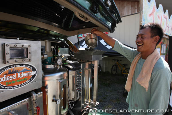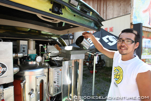 揚げカスも少ないし、いい燃料になるはず!「廃油の処分に困っていたんです。逆に助かります!」と言って頂いた社長さんの樋口さん、聞けば本職は建築大工さんなのだそう。