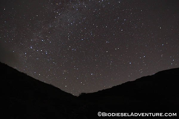 あたりはどんどん暗くなっていくが、ヘッドライトをもっているので、予定通り下山することに決めた。途中、夜空を見上げると、満天の星と天の川が見えた。