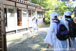 7時頃起床。この宿坊に同じく宿泊していた皆さんと朝ご飯を頂いていると、山伏の星野さんら修験者が帰ってきた。早朝の修行を終えて、戻ってきたところだった。彼らの修行の最後となる、勤行を僕らも一緒にとなえさせて頂く。