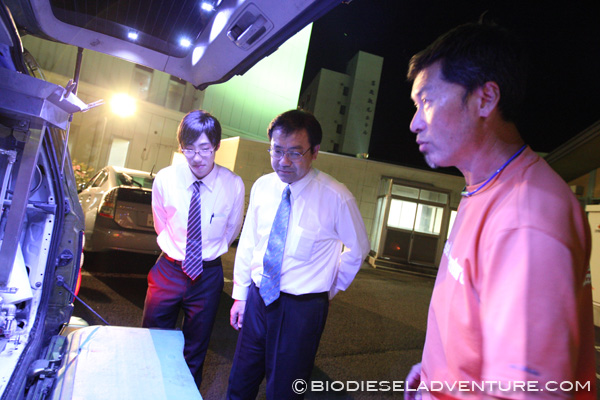 夜、到着すると、「さ、どうぞどうぞ温泉につかってゆっくりされてください」と支配人の石川さんやスタッフの皆さんがアットホームに出迎えてくれた。車に積んだ精製機を説明させて頂くと、とても熱心に耳を傾けて、油も用意して頂けるとのありがたいお言葉も頂いたのだった。