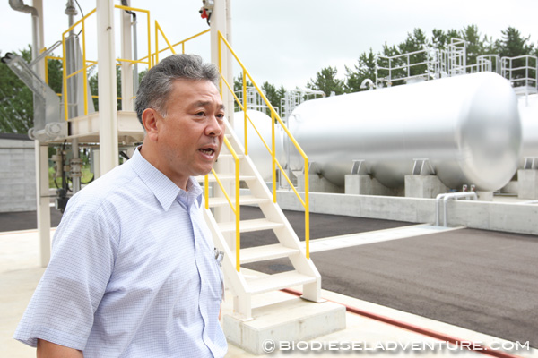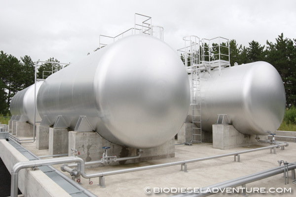 バスコファイブを見て頂いた後に、職員の方にご案内頂き、その混合施設を見に行くことができた。昨年できたというその混合施設は、非常に立派なものだ。しかしながら、その稼働率はかなり少ないという。聞けば流通などの問題に加えて「BDFはエンジンがダメになる」という間違った先入観も大きく、なかなか販路を見いだせないのだそうだ。