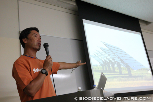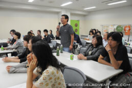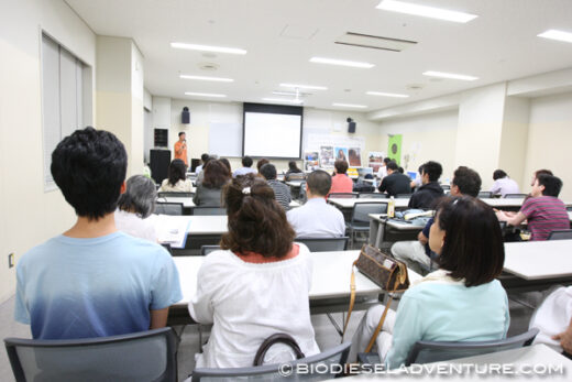 次に「バイオディーゼル燃料を車に入れたことがあるひと!」と聞くと、一人だけ手をあげた。さすがに一般に入れている方はいないようだ。じつはその一人は僕の知人である元バイクショップのオーナー。参加者からの質問など、反応がよかったこともあり、あっという間の2時間、僕もとても楽しんでトークできたすてきな時間だった。
