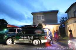 「どうもこんにちは〜」と初対面の挨拶も早々に、もう一台の車が後にやってきた。なんと釧路の「まるいしバイオワークス」の奥さまが、BDFを届けにやってきたところだった。じつはまるいしバイオワークスは、BDFを精製している会社で僕が立ち寄るはずだったのが、今日はお忙しいということで残念ながらおうかがいできなかった。さきほど立ち寄らせてもらった「とうろの宿」の小川さんも、ここからBDFを購入しているのだ。