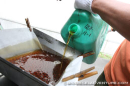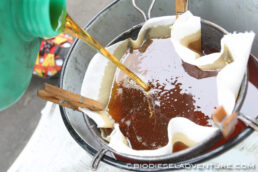 さらに、こす作業もお手伝い頂いたのだった。油はとてもきれいで、カスもあまり出ない。きっと体に優しくて美味しいメニューに違いない!