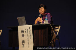 第一日目である今日は「民力による社会問題への挑戦」をテーマに、パネリストで藤井さんが登場。「菜の花プロジェクト」について力強く発信されていた。同じくパネリストである「NPO自殺対策支援センター ライフリンク」の清水さんと、それぞれの活動について、社会問題への取り組みや問題点、それぞれの共通項やシェアして学ぶところ……など、ディスカッションも非常に興味深かった。