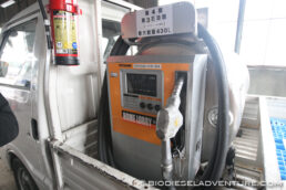 BDFを一時貯蔵したり、給油で使用しているのが、マツダのボンゴ(写真下左)。荷台に給油機が搭載されている。じつはこのNPOの取り組みはマツダの助成金が下りているので、この車がピッタリとのことで選んだそうだ。給油に使っているホース類は、フッ素加工などされていない。BDFでどれくらいもつのかどうか、試しているとのこと。