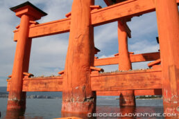 海の上に浮かぶ朱色の鳥居。目の前で見るそれは荘厳だった。
