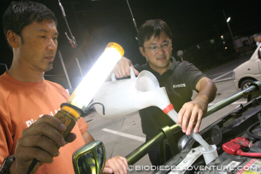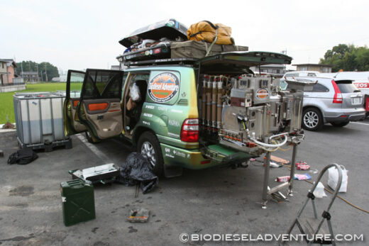 車内の荷物を整理していると、給油ホースを取り替えた方がいいと青山さんに勧められる。プラントを作って以来3年間取り替えていないのだが、さすがに時期がきたようだ。