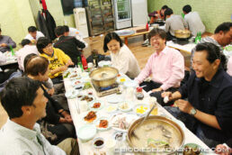 じつは僕は辛いものが苦手。それを知って、なんと辛くない魚鍋を用意してくれたのだった(韓国料理が大好きな方たち、すみません…)。何種類ものキムチやお刺身もあわせてテーブルにずらり。