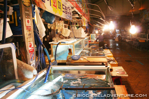 夜の7時半すぎ。ブアンに到着した。ここは人口7万人ほどの街。市場には水槽があちこちに並んでいる。海に面しているので、魚介類が新鮮で美味しいのだそうだ。そのビルの一角の鍋屋さんで今日はご飯をご馳走になることに。