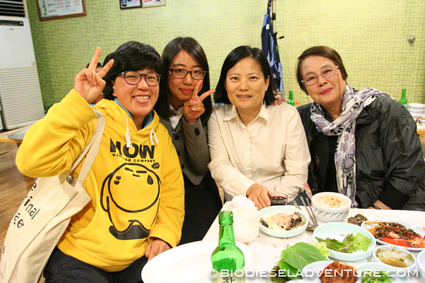 合流したのは「ブアン市民発電所」で副所長を務めるリーさんの妹リー・ヒュンミンさんと、リーさんの娘さん。たまたま日本から訪れていた「原発いらん! 下関の会」の沢村さん、沢村さんを日本のお母さんと慕う通訳の方。