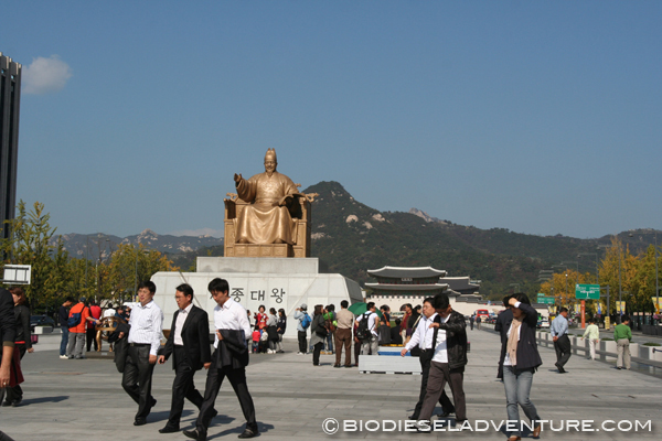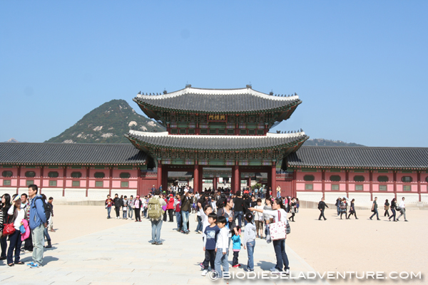 ソウルの五大宮のひとつ、景福宮(キョンボックン)でヤンさんと待ち合わせた。ここは朝鮮王朝の王宮として600年の歴史をもつ宮殿。文化財も多々あるそうだ。