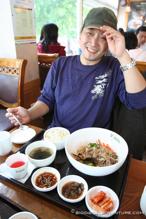 お昼には韓国庶民の味、ビビンパッのチェーン店に入ることに。韓国の発音を聞くと、日本の「ビビンパ」の最後に「ッ」を付けるのが正しい感じ。お店のメニューやガイドブックには「ビビンバブ」とか書いてあった。