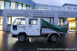 シンプルでわかりやすいですね。これは「西田組」の廃油を回収&BDFを運ぶ車です。