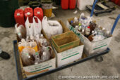 <<(写真右上)ボトル左:マイナス17℃まで使える流動点降下剤入りのBDF。10月くらいから徐々に入れはじめ、冬には全体にまわるように投入している/ボトル右:冬期以外のシーズンのBDF。うっすらと白いかたまりがビン底に。
