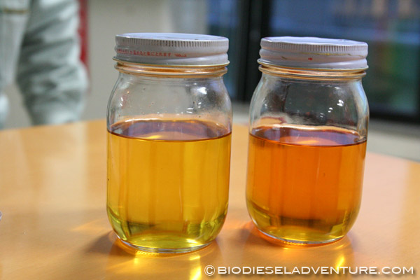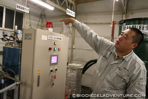 はじめのほうは詰まってしまったそうで、出来上がったBDFを3日寝かせるように工夫。できるだけグリを取り除き、使用しているそうだ。